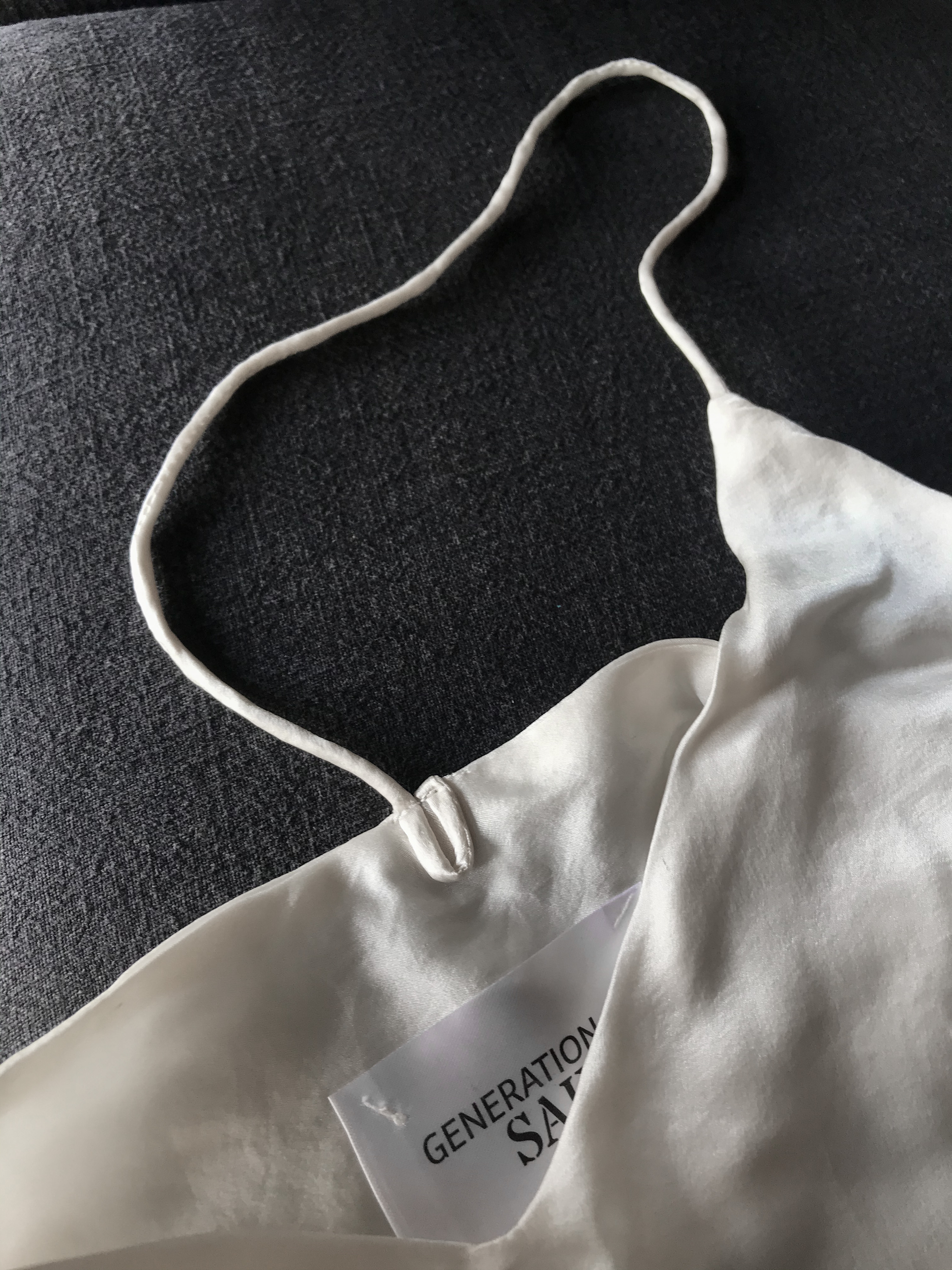 Our white silk fabric may be slightly sheer to some. Don't worry about our tops and dresses as they are all double-lined in the chest area. As for bottoms and the more fitted dress styles in white, we suggest wearing nude panties - or none at all.